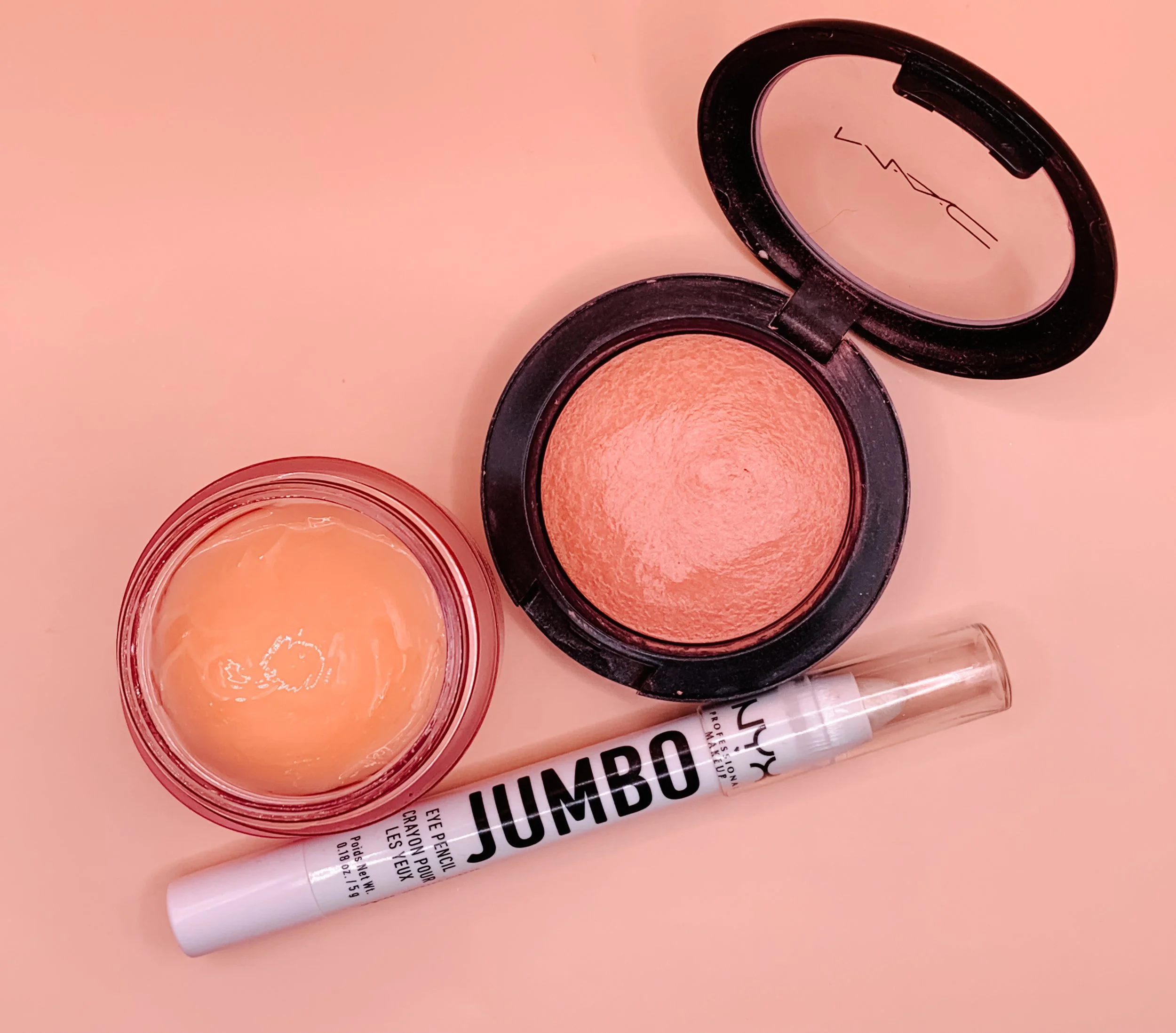 To finish off my look, I apply a swipe of blush to the apples of my cheeks and to my nose. I curl my lashes, and sometimes when I am looking real tired, I use this eye pencil from NYX in the inner corner of my eye to make me appear more awake. Then, I finish off my face with a dab of the Laneige lip mask and we’re done.