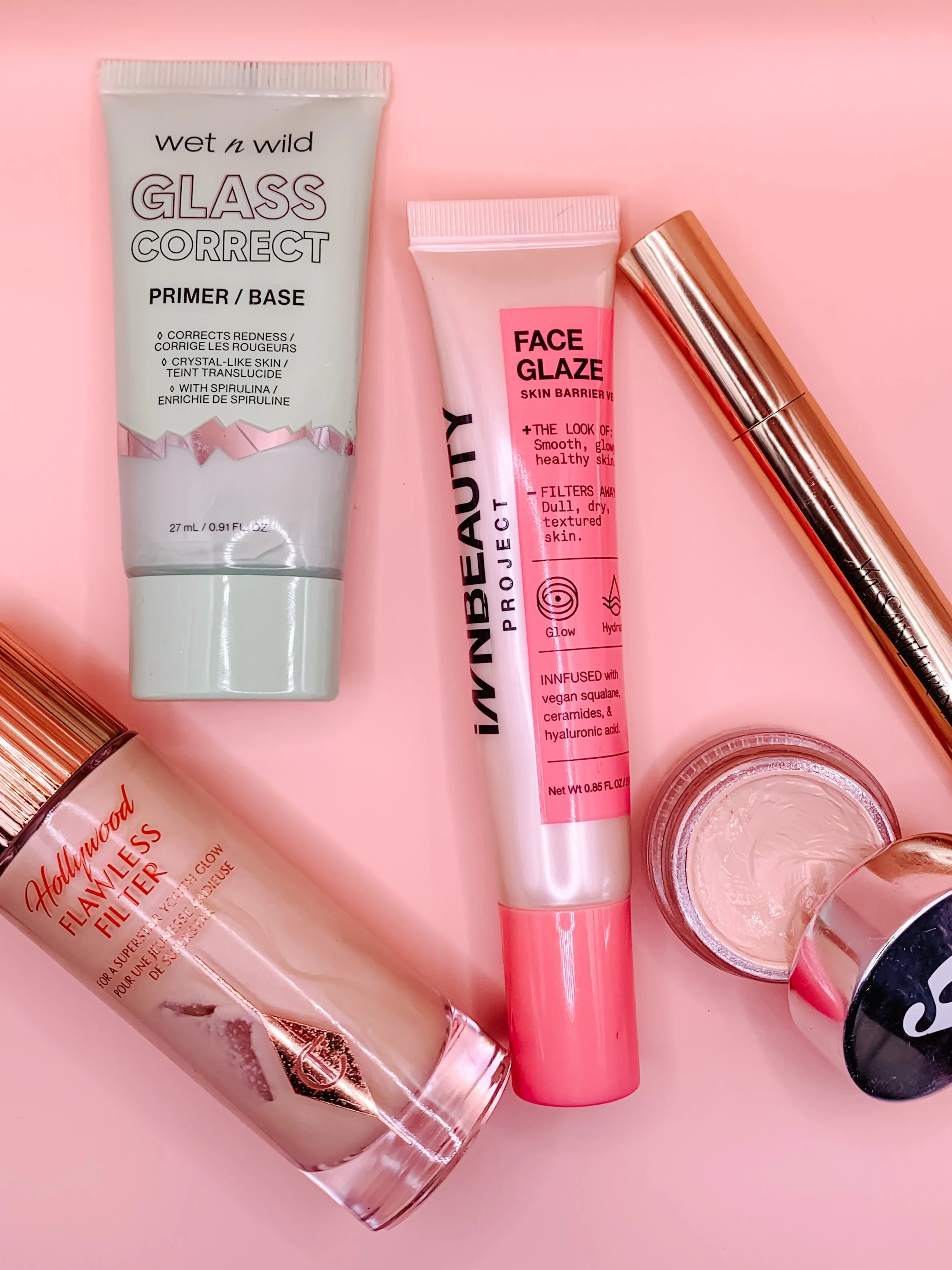 After my skin care has been applied, I apply a green primer from Wet n Wild that is supposed to reduce redness. Then, I apply a face glaze from iNNBEAUTY Project, which I am obsessed with. It gives my face such a healthy, refreshed glow. After I apply my newest obsession, I go in with the Hollywood Flawless Filter as my base and then I use the YSL concealer under my eyes to brighten them. I really only whip out the Glossier concealer when I to cover blemishes.
