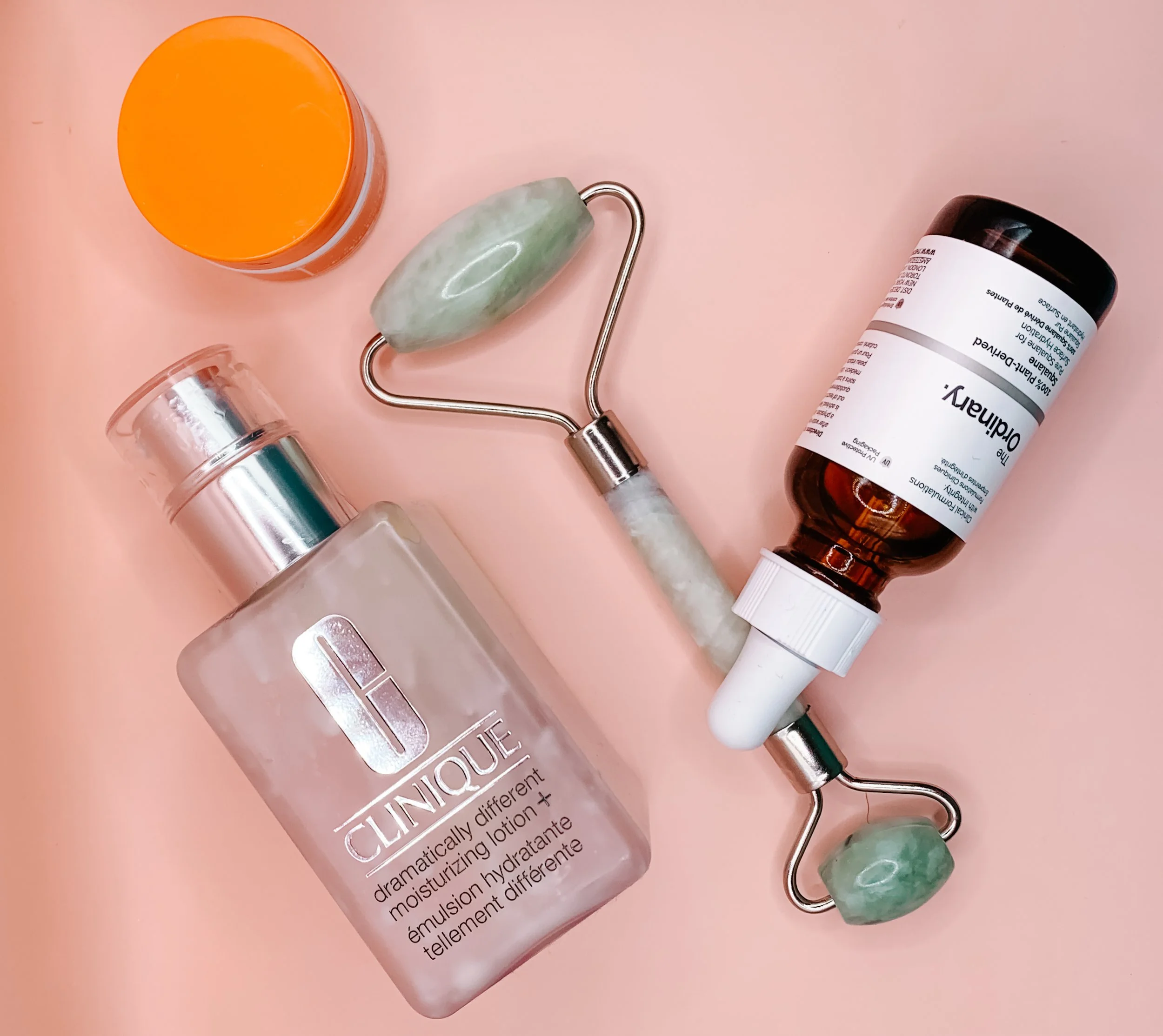 Once I have fanned my face, I apply a generous amount of moisturizer, a dab of hydrating oil and my chilled eye cream. Then, I take a cold jade roll and massage my face. Again, none of this has changed, since I am a creature of habit.